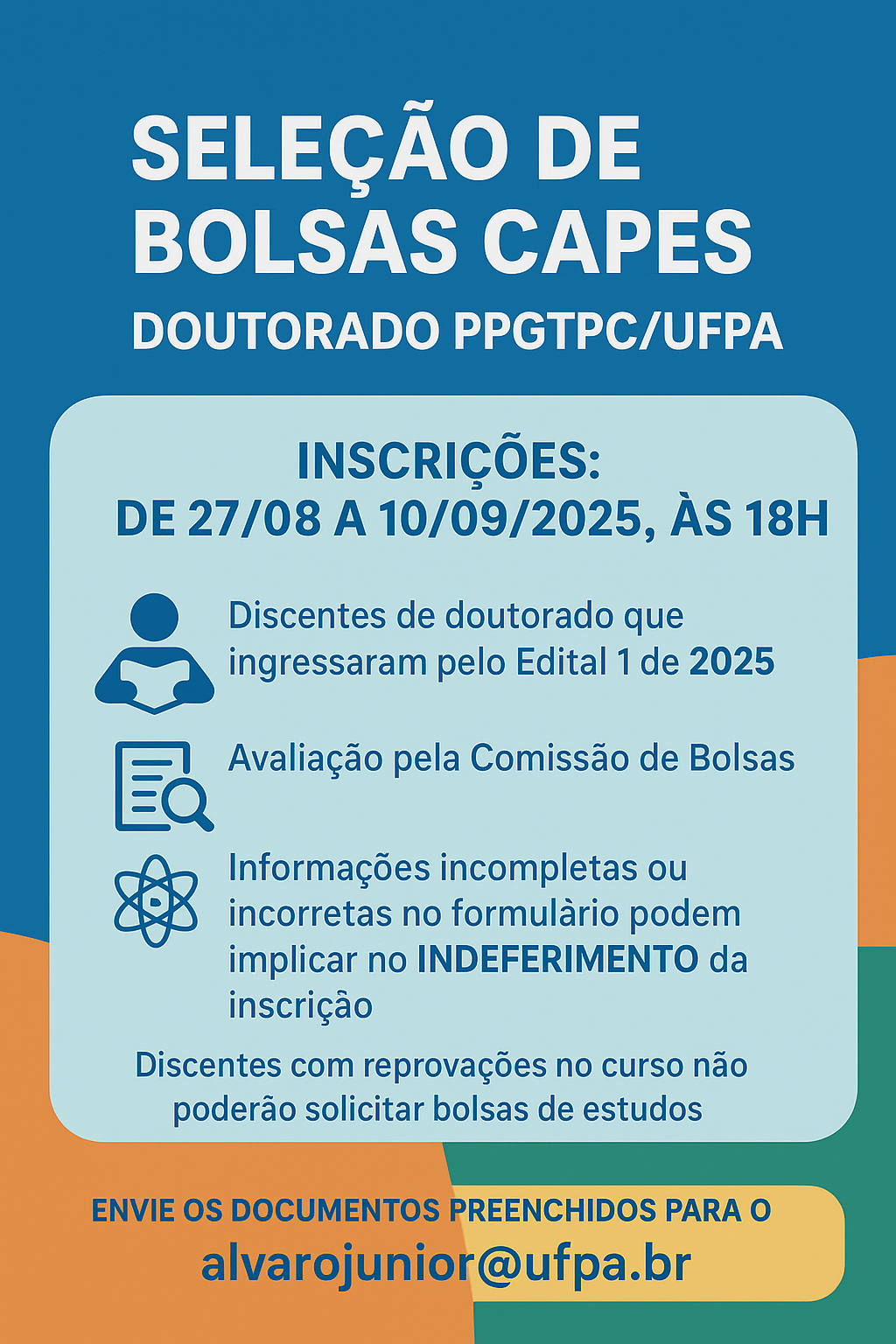 A Coordenação do PPGTPC informa que está abrindo um prazo para as inscrições à bolsa de doutorado sanduíche referente ao Edital PDSE/PROPESP 12/2025.